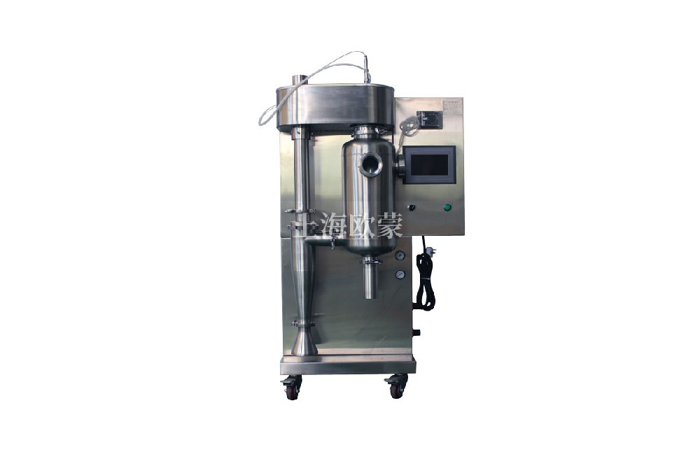 小型噴霧干燥機(jī)是一種可以同時完成干燥和造粒的裝置。按工藝要求可以調(diào)節(jié)料液泵的壓力、流量、噴孔的大小,得到所需的按一定大小比例的球形顆粒。